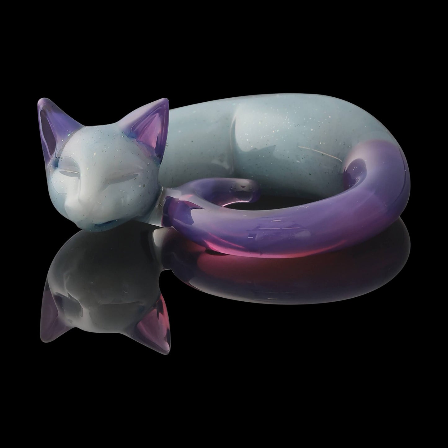 CFL Blue Stardust over Pastel Potion, Royal Jelly Tail/Ears Small Sleeping Kitty Pendant by Spiller Woods (2023)